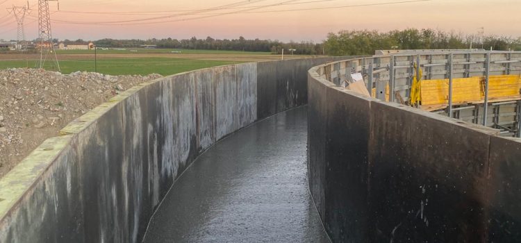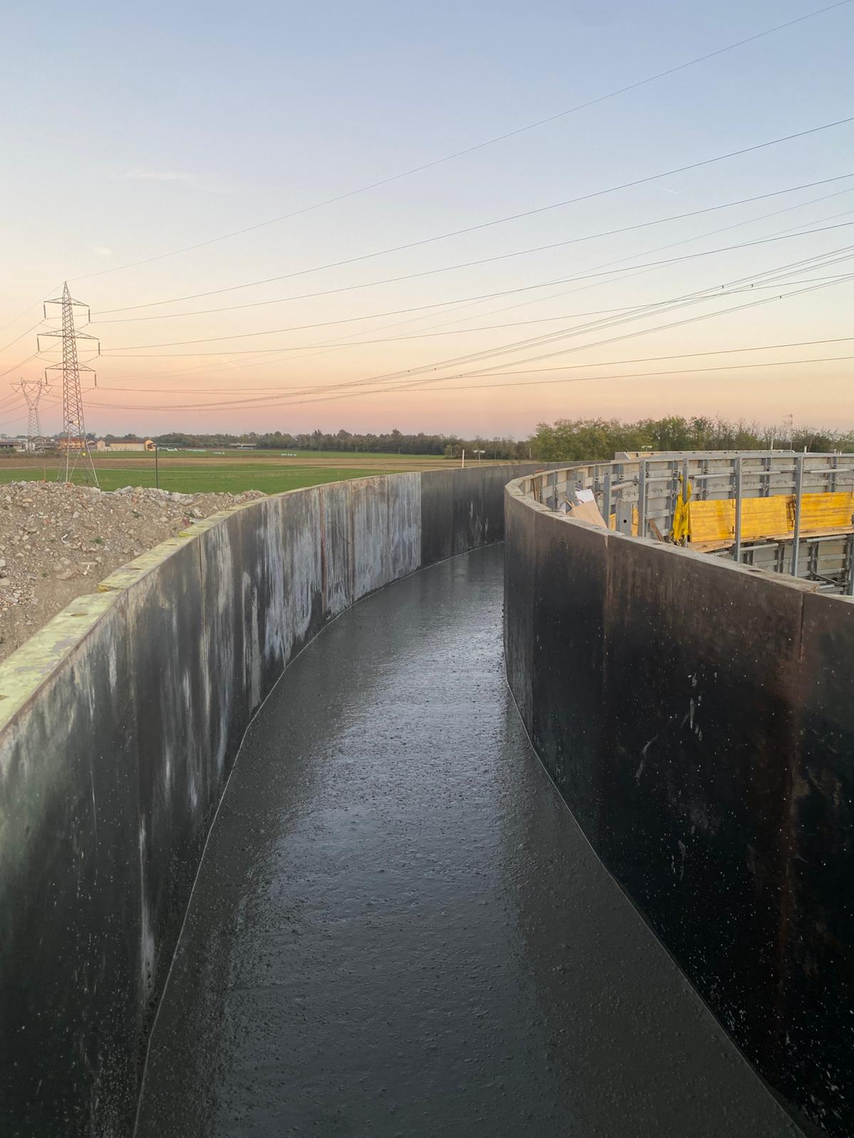 - N.1 circular concentric biological reactor tank with dividing wall, diameter 38 m / height 7 m, second diameter 22.5 m / height 7 m