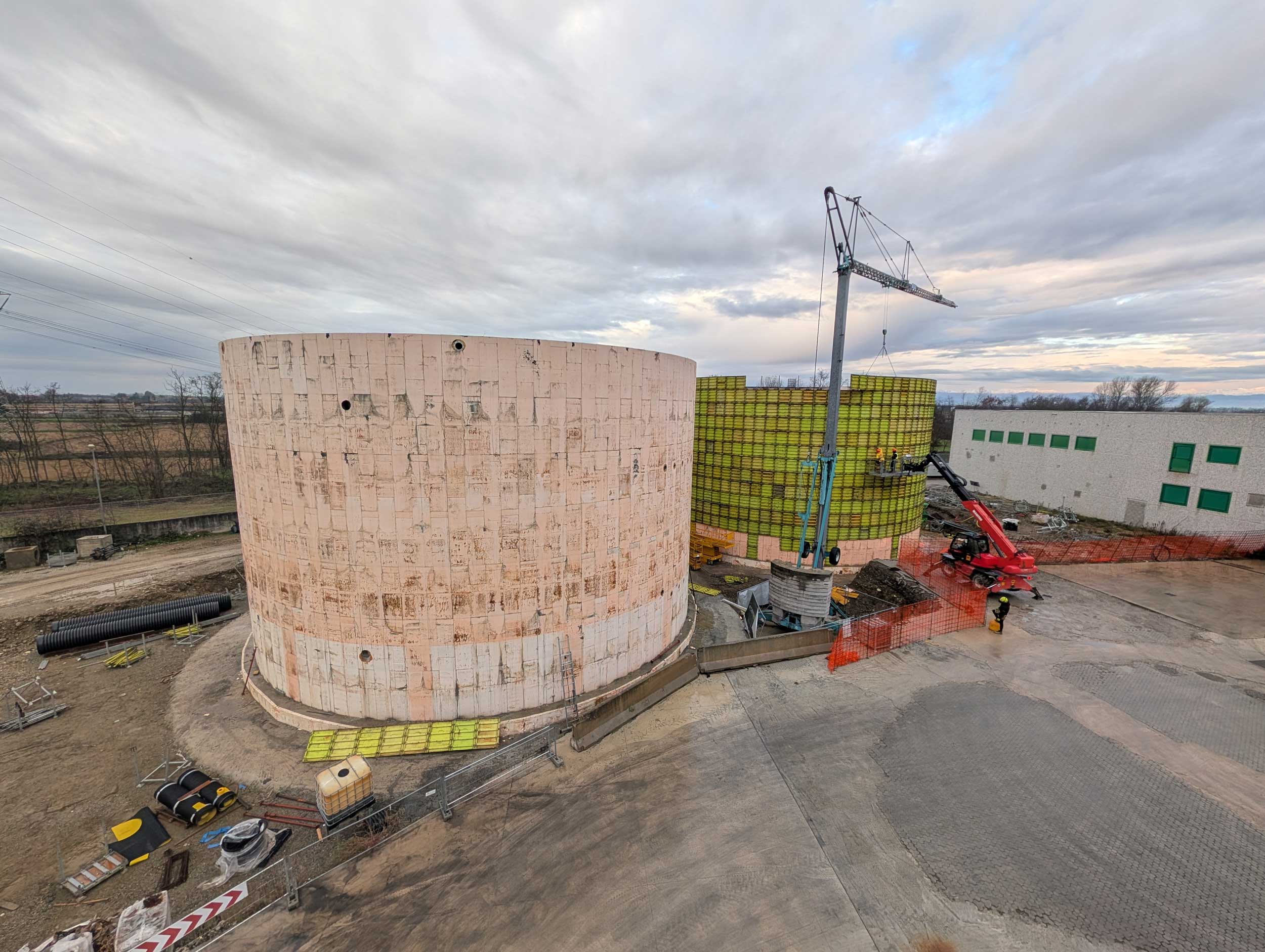 - N.1 circular dewatered sludge storage tank, diameter 20 m / height 11 m